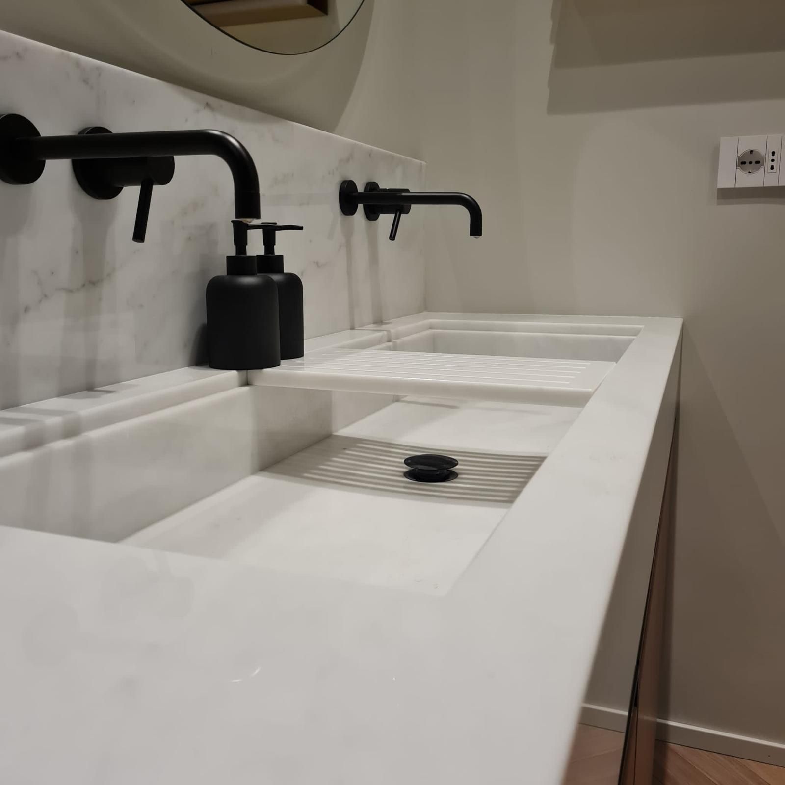 Il marmo è un materiale che offre un'eleganza senza tempo e una grande resistenza, ideale per i piani dei lavabi che devono sopportare l'uso quotidiano.